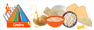 1. مجموعة الحبوب والنشويات الخبز - الحبوب - الرز - جميع أنواع المعجنات : من 6 إلى 11 مرة:تحتوي هذه المجموعة على النشويات المركّبة التي تؤمّن الطاقة لكافة الأعمار, وهي غنية بالفيتامينات والمعادن مثل: الأرز, الخبز والمعكرونة. ولكي يحصل الطفل على قيمة غذائية أعلى, اختاري كل ما هو مصنوع من الحبوب الكاملة كخبز النخالة, الأرز الأسمر, الشوفان والبرغل, فهي غنية بالحديد, الفيتامين ب والألياف الصحية. و يجب الابتعاد عن الطحين الابيض |