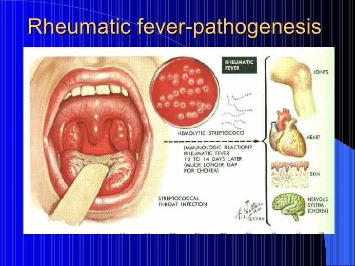 قد يخفى على البعض أن التهاب البلعوم واللوزتين غير المعالج معالجةً فعالة يمكن أن يؤدي إلى إصابة القلب بكثيرٍ من المتاعب . إن الحمى الرثوية هي ارتكاسٌ مناعي للجسم يمكن أن يتلو التهاب البلعوم واللوزتين بجراثيم المكورات السبحية , وإصابة المفاصل وعضلة القلب بالالتهاب أيضاً .