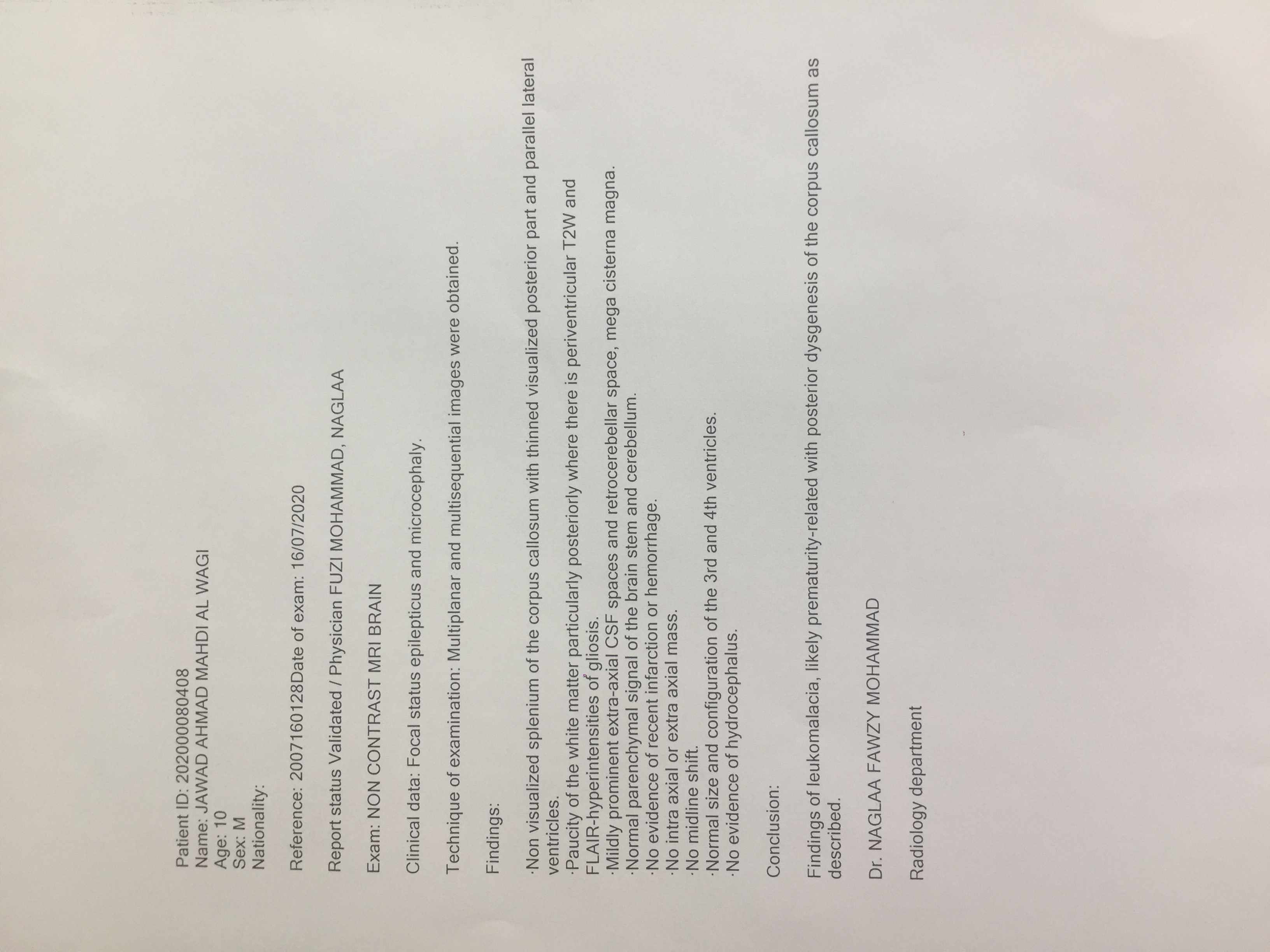 الطفل يعاني من تشنجات في القصبة الهوائية تؤدي لازرقاق الشفتين، وتشنجات على شكل رجفه في الطرف الايسر